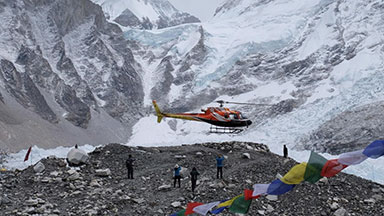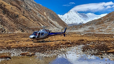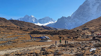 A helicopter flight from Gorakshep to Kathmandu is a stunning and time-saving option to wrap up your Everest region adventure in Nepal.
